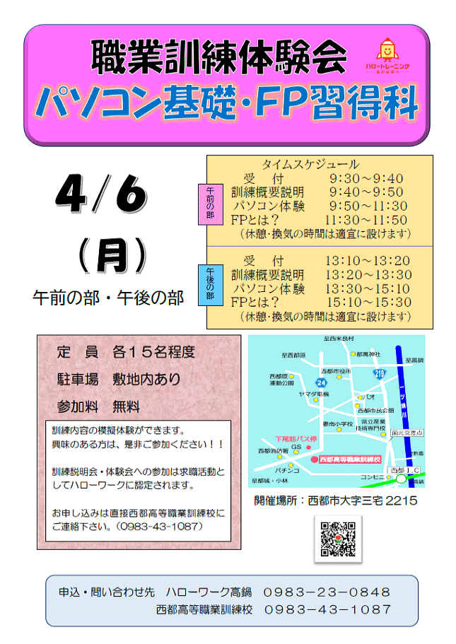【募集中】令和8年4月6日「パソコン基礎・FP習得科」の体験会(無料)のご案内